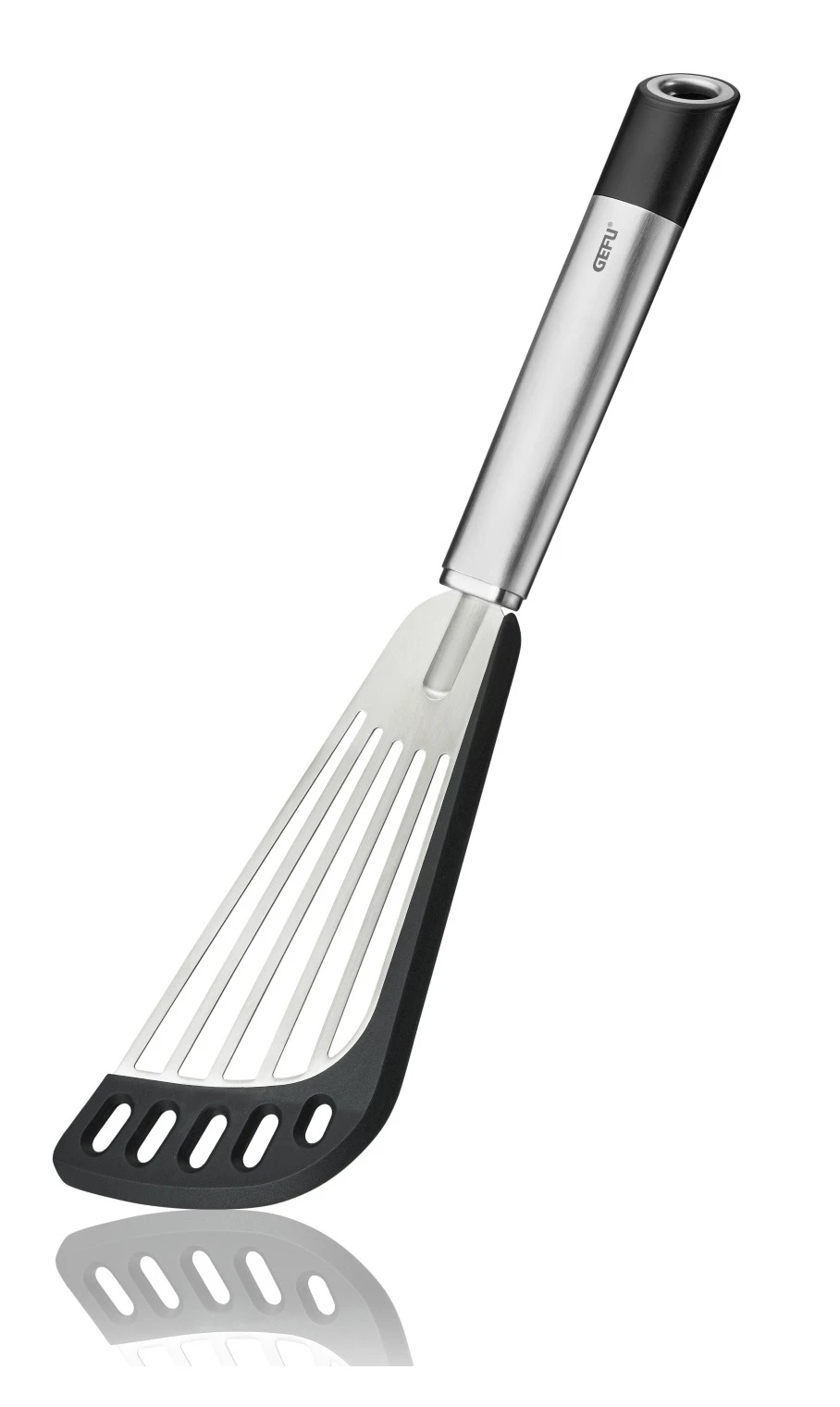 Deze Gefu spatel hoort in iedere collectie van keukengereedschap. Met het flexibele draaioppervlak van de spatel wordt het voedsel moeiteloos uit potten en pannen verwijderd zonder het oppervlak te beschadigen. De extra geplaatste siliconen ring in de greep garandeerd dat de greep waterdicht is. U heeft geen last van een lekkende greep nadat de spatel uit de vaatwasser is gekomen. Deze spatel is gemaakt van siliconen en heeft een lengte van 31.5 cm.